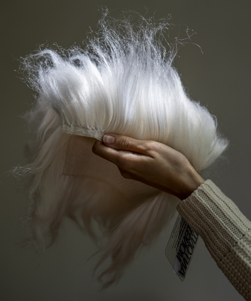 Antonin Mongin is a designer resercher (Ph.D.) and textile artisan-designer based in Paris. His work involves the textilisation of rare and unusual fibers such as natural and synthetic cut hair, horsehair, raffia, sisal and ramie. In his workshop, he weaves, knits, silkscreen prints and 3D prints textile materials designed and made to order for haute couture, luxury ready-to-wear and set design house.