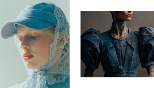 High-definition imaging technology enables near-photographic rendering, bringing to life visuals inspired by Italian frescoes and classical still lives. Dramatic contrasts and chiaroscuro washes unfold across indigo surfaces, infusing garments with a painterly, almost cinematic dimension.
