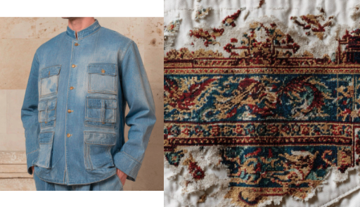 A layered reinterpretation of historical references and grand artistic heritage, where past eras, silhouettes, and techniques are reworked into a contemporary, expressive lens—subtly anachronistic. Within this theme, fabrics echo the richness of textile history: velvets, satins, and jacquards reminiscent of upholstery and interior furnishing textiles. A sense of depth, ornamentation, and tactility re-emerges, elevating denim beyond its traditional codes.
