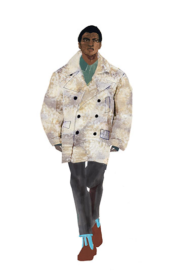 The new silhouette is a celebration of raw, magnified authenticity. But this time, the grunge vibe is powerfully and irreverently wrapped in luxurious materials that have been aged – even carefully battered. These rarefied imperfections triumphantly update iconic menswear coats.Noble rawness