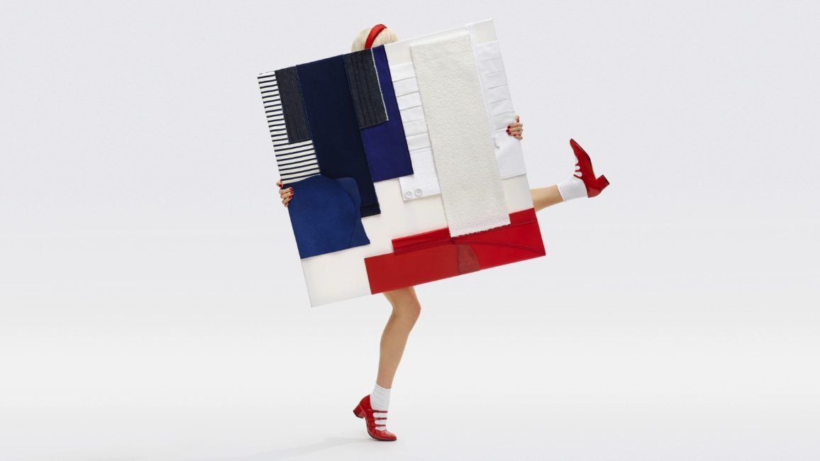 Laura Bonnefous : Une fois le concept de l’image défini, j’ai travaillé sur différents croquis afin de trouver la composition finale du tableau. J’ai reçu les différents échantillons et avec Stephanie Brissay, la styliste avec qui j’ai collaboré, nous avons créé la toile « Made In France » que j’ai ensuite photographié avec notre personnage.Stéphanie a en parallèle imaginé un stylisme qui ferait directement écho au tableau afin de créer une image élégante, à la fois picturale et sculpturale. Nous avons dans un second temps réalisé la prise de vue avec une danseuse qui est venue donner vie au tableau.