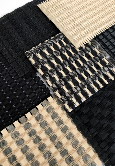 Trained at the prestigious Boulle and Duperré schools, Stéphanie Lacoste now practices her art in her workshop Curiosité Textile, a veritable laboratory of experimentation where weaving, color, and light dialogue with unexpected materials such as stone, wood, and straw, which the artist plays at diverting from their intended uses.