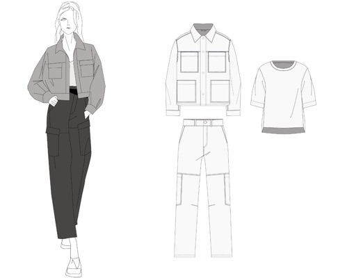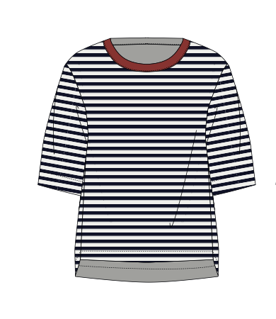 Conçue avec des matières et des accessoires 100% Made In France, dont une partie issue de stocks dormants, la nouvelle tenue a été réalisée par l’Atelier des Mouettes en Mayenne à partir de maille Henitex pour le t-shirt et de sergé Telatex pour la veste et le pantalon.T-shirt marinière en maille Henitex