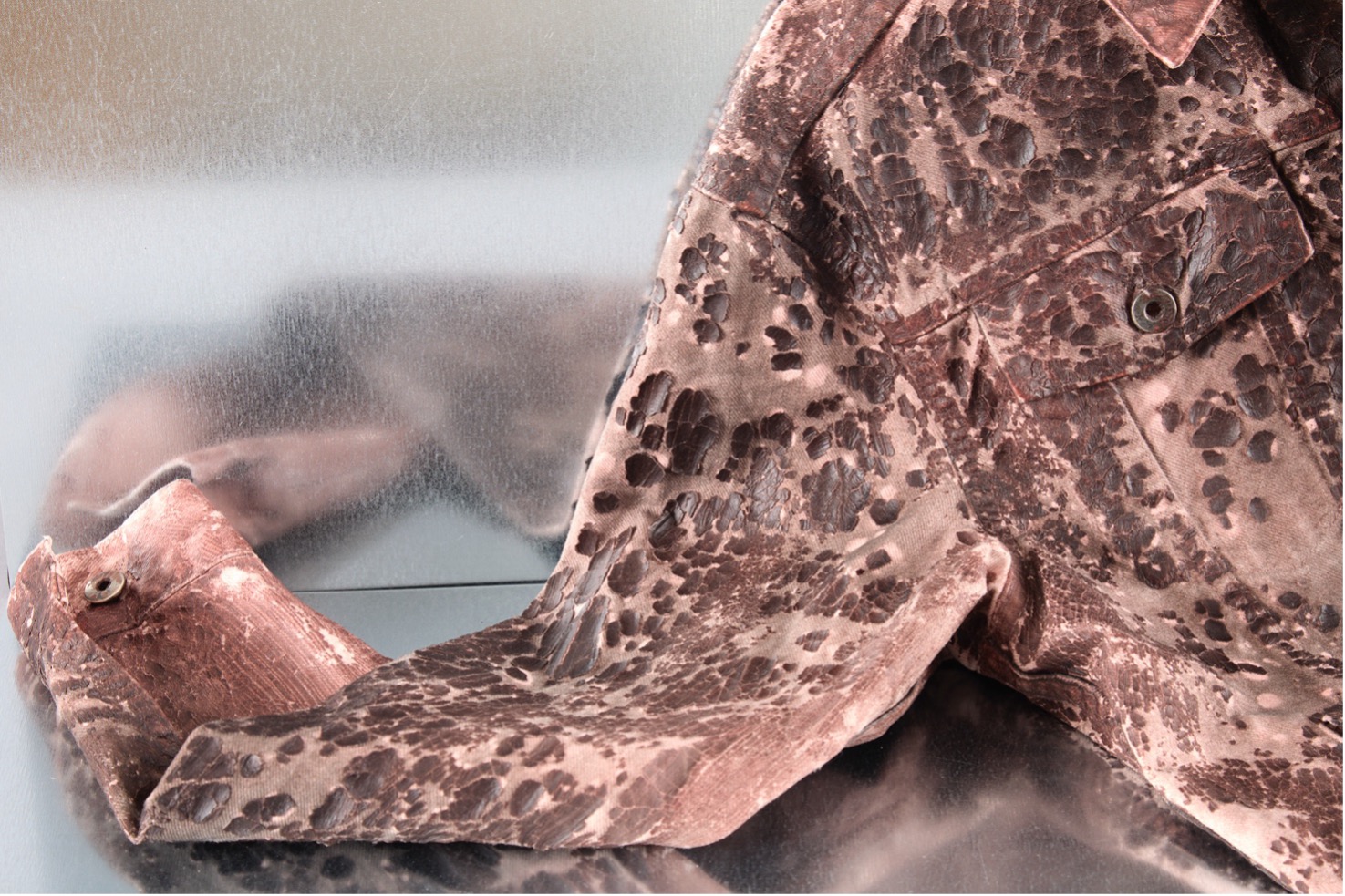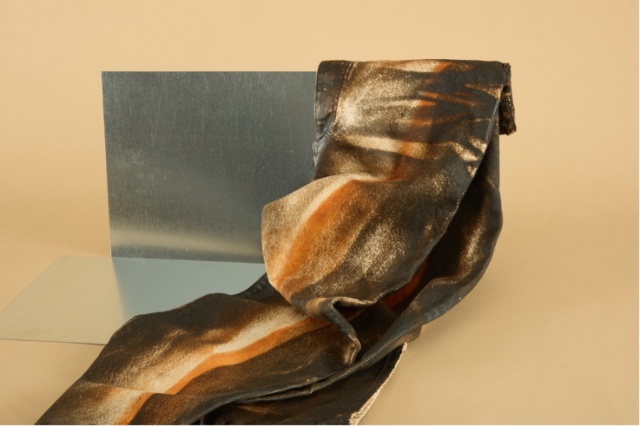 The deterioration of the material is translated through cut-outs and fragmented effects, while laser-cut, deconstructed forms bring a sense of volume and vitality to surfaces.